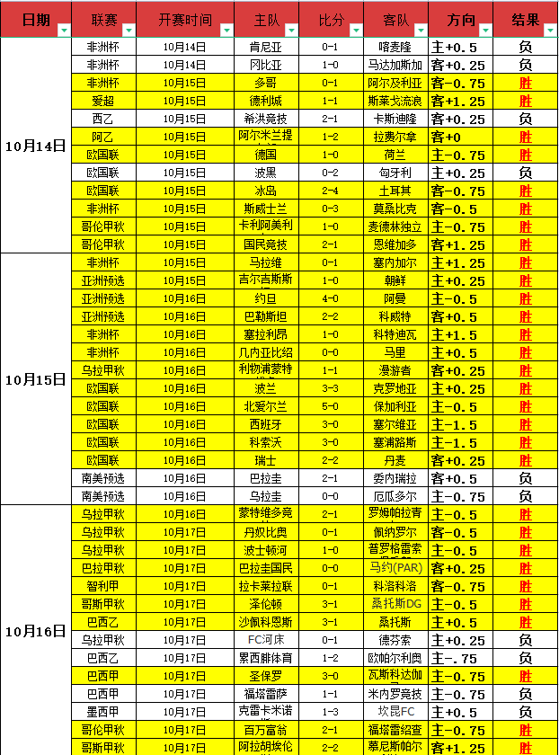 昨天数据发挥惊人,整体14胜10净+6!昨天数据中,早场的乌拉甲表现非常的出色,3场全部完美的打出,非常的精彩!晚场的智利甲的表现非常的出色,完美的打出!而哥斯甲的表现也非常的出色,2场都完美的打出!夜场的哥伦甲继续完美的打出,非常的出色!