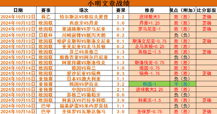 (成绩表为作者每天赛后统计,只统计近7天战绩,查阅过往战绩,可移步前日发布文章。与平.台无关,如有造假请举报)