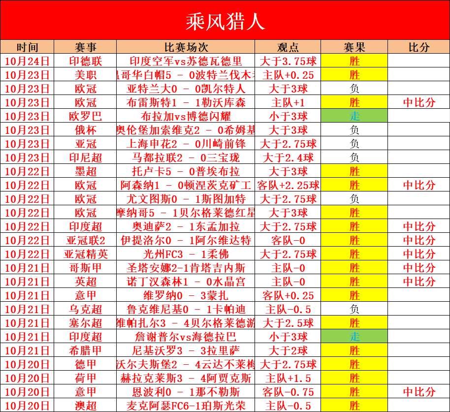 【猎人回顾】近期26场20不败+印度超6连胜!下午小联赛印德联又红了,早上美职红了,昨日欧冠布雷斯特红了,欧罗巴博德闪耀走,昨净增长成绩稍有中断,不过近来的成绩还是很出色!今日赛事质量不错,信心王牌精选好单!