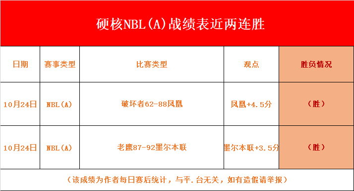 【成绩回顾】作者在昨再取3战胜利!近期NBL(A)再取两连胜!今日焦点赛事大量,在今日众多赛事中选取信心赛事!今日赛事质量可以!咱们继续胜起来!