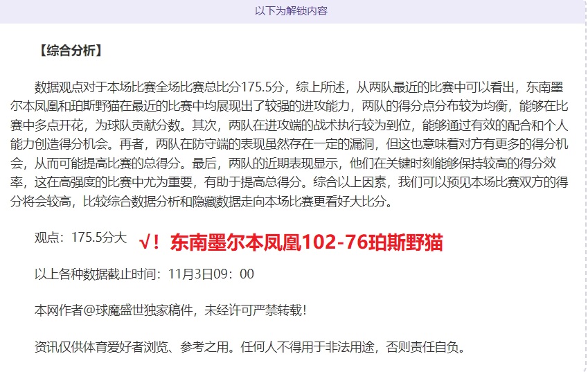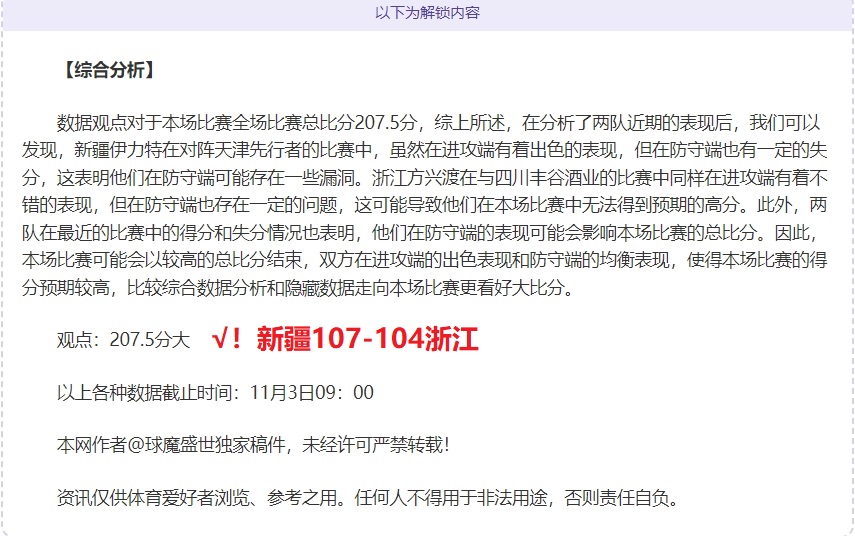 解锁内容包括:综合大数据分析+比赛建议+作者观点