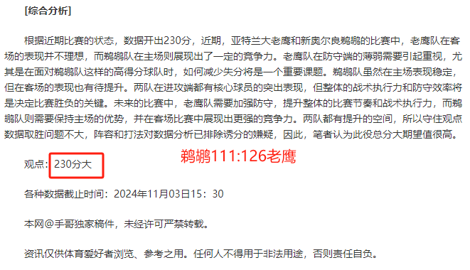 赛事回顾:昨天鹈鹕111VS126老鹰获胜,作者潜心专研各大联赛的动态,本场作者演算优越概率再分析精彩赛事!运用大量篮球知识演算赛事分享给大家,专业的赛事分析有目共睹!深度调整过后将奉上精彩的赛事情报!紧随作者的步伐,收获胜利并非难事!