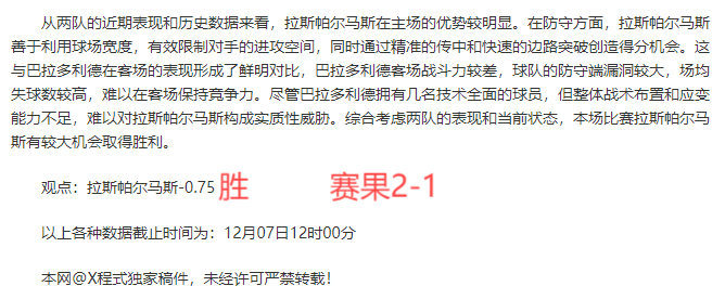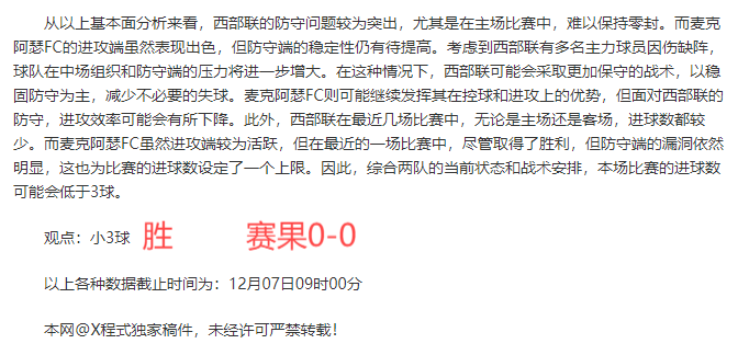《战绩回顾讲述》昨天澳洲甲 西部联vs麦克阿瑟FC,小.球方向方向准确打出;西甲 拉斯帕尔马斯vs巴拉多利德,拉斯帕尔马斯方向准确打出。