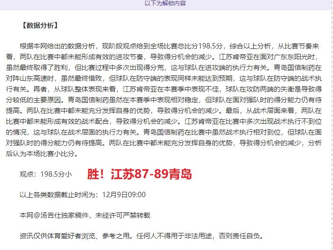 以下解锁内容包括:两队详细的战况分析+两队详细的数据分析+数据观点