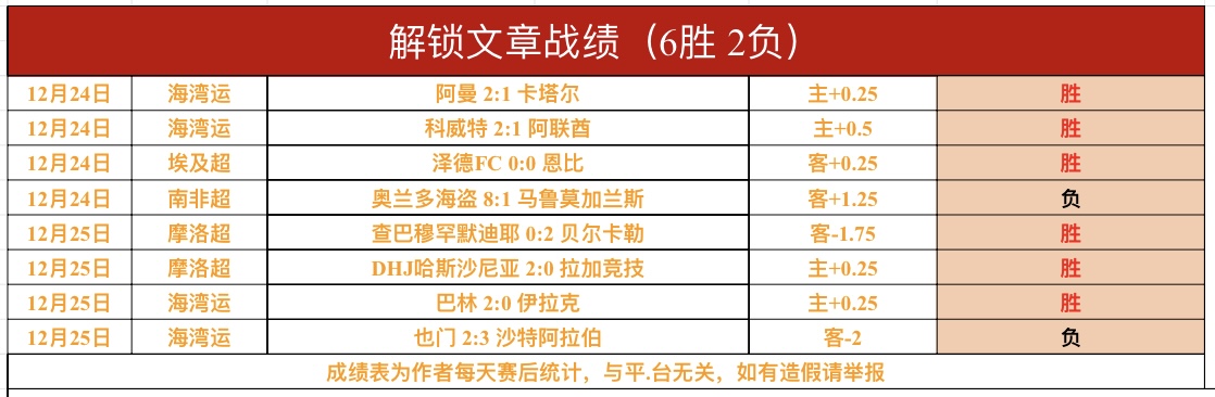 战绩回顾:昨日总计6场比赛,拿到4胜1走1负,成绩出色!私推赞赏1场,埃及超富图雷走了!私推总进球数1场,埃及超金字塔大方向完胜!解锁文章4战拿到3胜1负,近期解锁文章8战拿到6胜2负,成绩出色!摩洛超贝尔卡勒、DHJ哈斯沙尼亚,海湾运巴林胜利,海湾运沙特没有打出!