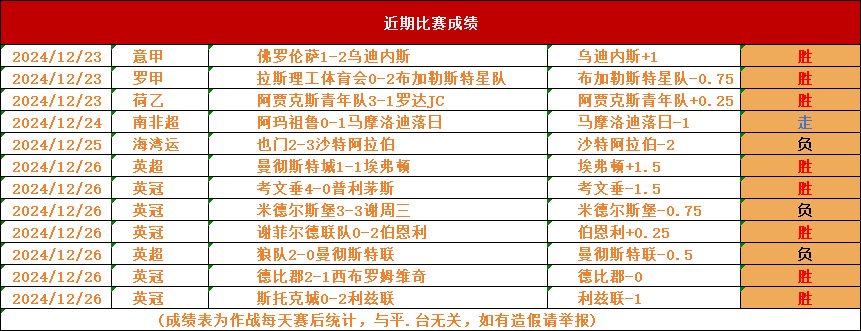 布莱顿是英超联赛中上游球队,球队本赛季英超联赛17场比赛过后6胜7平4负积25分排名英超联赛第10位,球队落后欧战赛区的伯恩茅斯仅4分,急需要积分追赶此役战意十足!布莱顿本赛季打入27球,失26球,球队攻防平衡!球队攻强守弱!布莱顿如今处于低迷期,球队连续5场比赛不胜,球队的后防出现较大的问题!不胜期间有3场比赛被对手打入至少2粒入球,上一场比赛球队作客对阵本赛季实力下滑的西汉姆联1-1战平对手,球队的竞技状态一般,此役球队主场作战不宜高估!