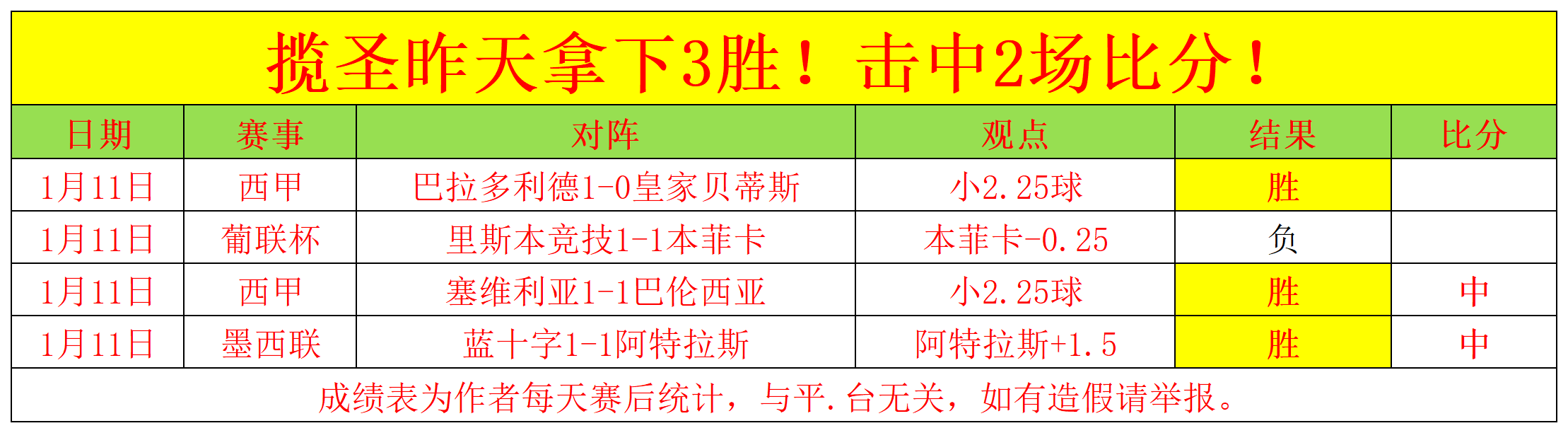 成绩回顾:昨天拿下3场胜利,击中2场比分,昨天整体发挥稳定,今天再接再厉!