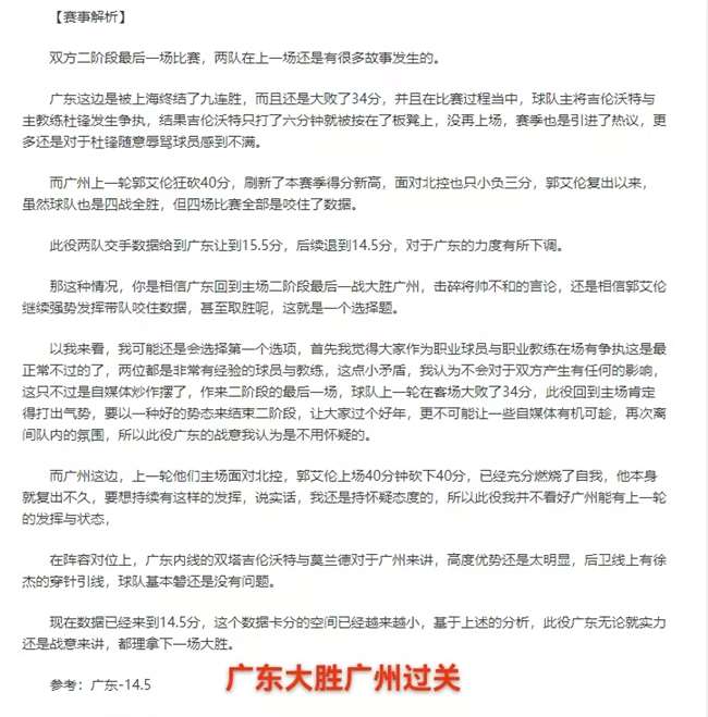 以下为解锁内容:含赛事解析+数据分析+观点参考