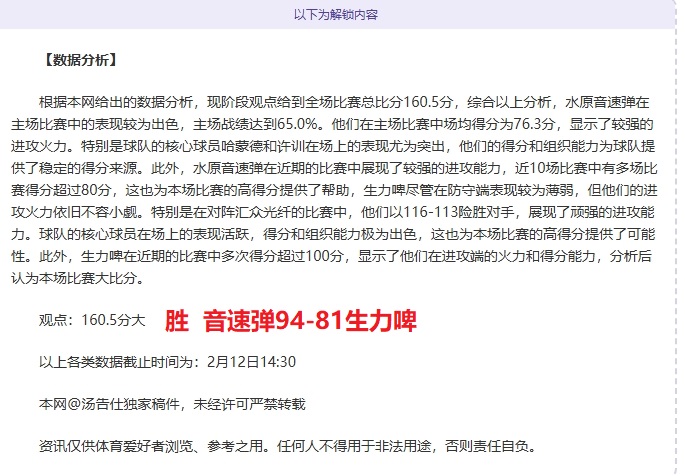 以下解锁内容包括:两队详细的战况分析+两队详细的数据分析+数据观点