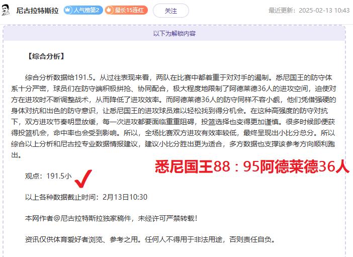 解锁内容包括:综合分析+比赛建议(数据观点+附加观点)
