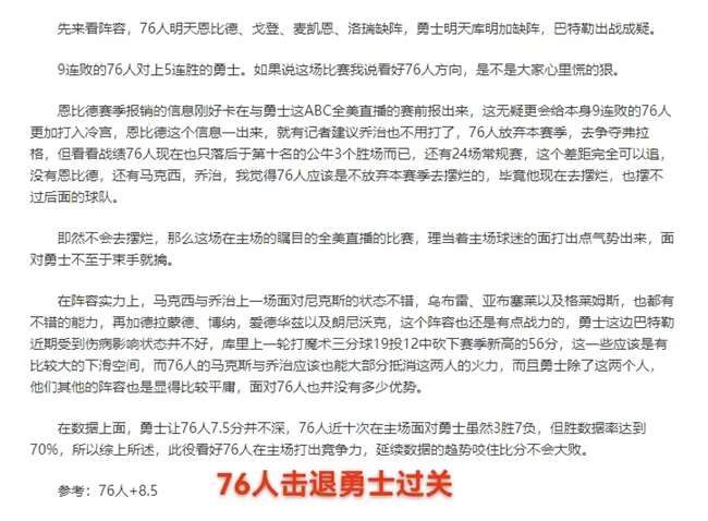 而且关于这则信息,我就有个疑问,这个事情发生在几周前,为什么刚好是在太阳打森林狼这场espn全美直播这场比赛的时候报出来,这个信息一报出来,太阳的形象已经差到低谷,现在还有谁敢去相信太阳,我觉得这就是一个套,就是为了来增加太阳的上手难度的,就像昨天76人比赛恩比德赛季报销一样,结果76人在主场硬是战胜了勇士,就是这么神奇。